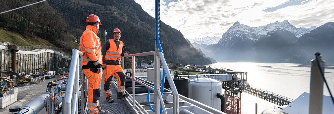 Tunnelwasserreinigung mit Ausblick - Großbaustelle in Sisikon in der Schweiz